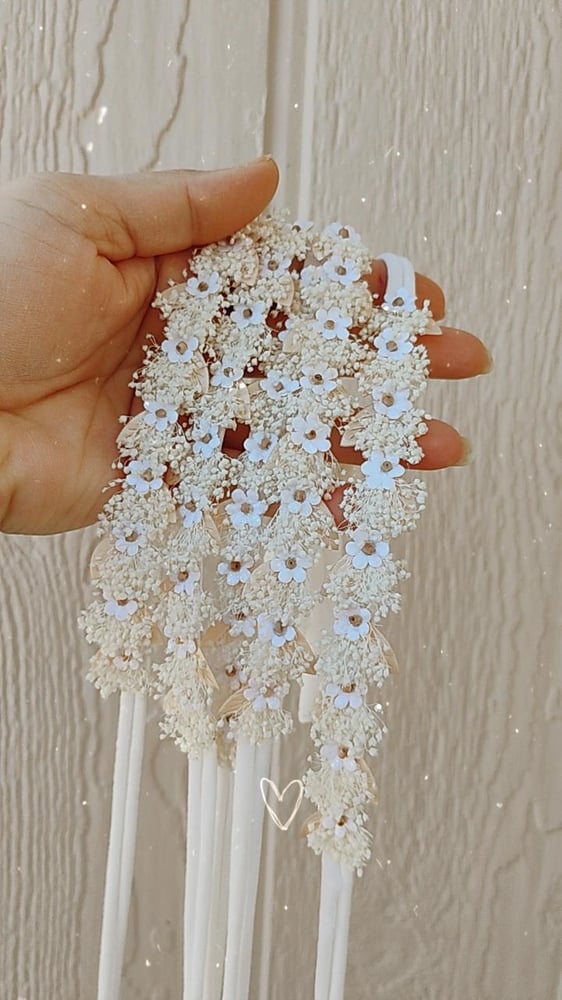 Beautiful dainty Tieback/halo like style that would work for nb and up. Set on jersey fabric on the back for better comfort.