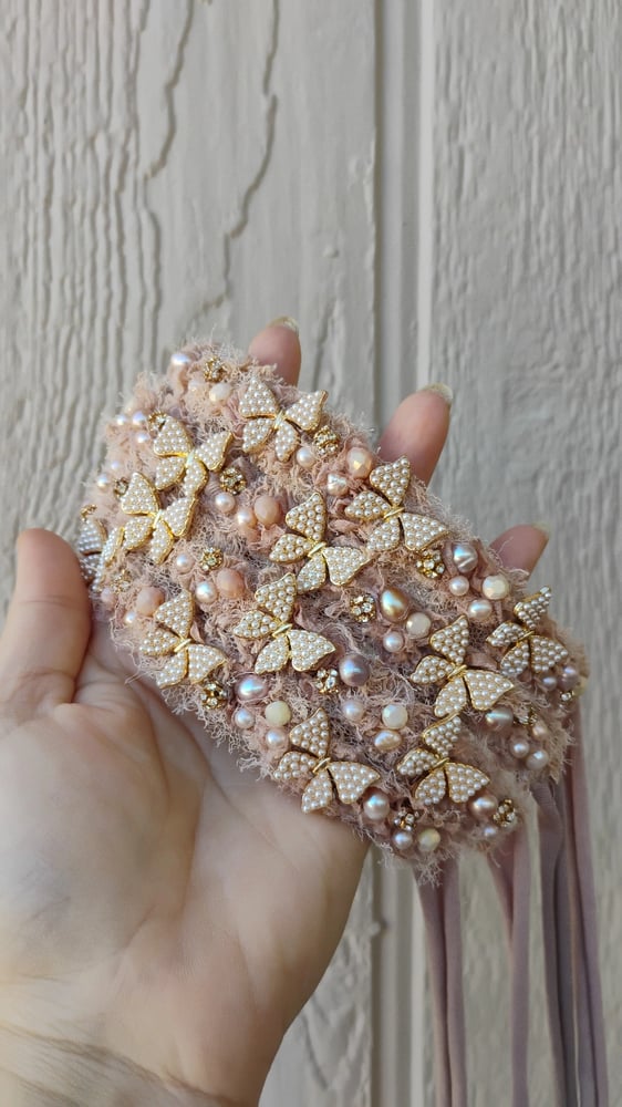 Pearls and butterflies tieback