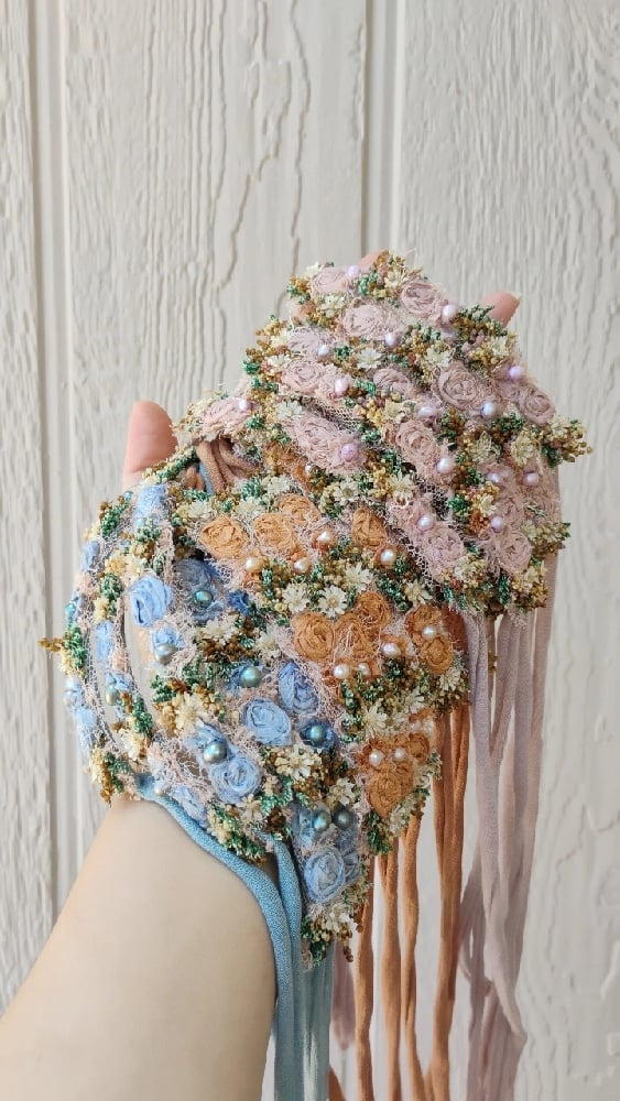 Beautiful dainty halos with greenery and silk ribbon Set on jersey fabric on the back for best comfort and fit.