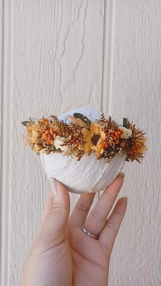 Beautiful halo made with real preserved flowers. Nb but would work for sitters also. Set on jersey fabric for better fit and comfort. Please allow 3 to 10 business days for shipping and handling 🙏